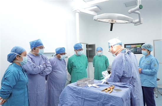 此次交流中,市一院泌尿外科主任陈柏君主任医师、叶海波副主任医师“操刀”示范。手术过程中,医生们一边操作,一边细致地进行讲解,从吻合器的选择、定位技巧,到术中注意事项、术后护理要点,毫无保留地分享临床经验。