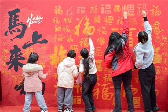 活动现场,民俗体验区的互动环节仪式感满满。青少年们将自带的桂圆、红枣、糯米等食材依次倒入竹筐中,并默念“纳一勺米,添一份福”的美好祈愿。手作纪念章摊前,孩子们专注地打磨、拓印,将腊八记忆定格于方寸徽章之上;百福卷绘制区,孩子们书写下一个个“福”字,最终汇成一面喜庆夺目的福墙。