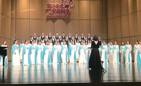 本报讯(记者黄晓慧文/图)近日,由市文化和广电旅游体育局、市总工会主办,市合唱协会、市音乐家协会承办的“驰马奋进,岁启新章——2026温岭市合唱新年音乐会”在温岭大剧院举行,老中青齐上阵,10个合唱团为观众带来了20首国内外合唱作品。