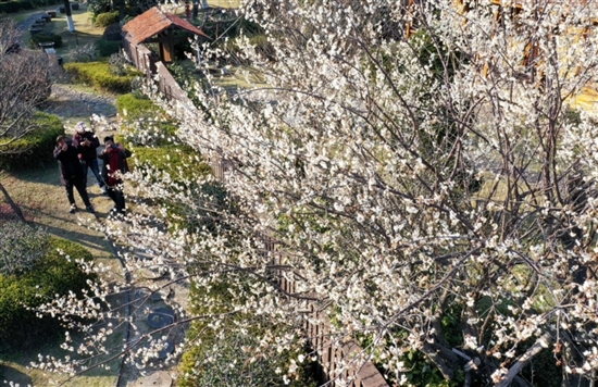 @周学军:眼下,温峤镇小明因梅园的梅花不惧严寒,傲然绽放。