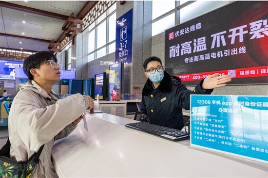 工作人员为旅客提供引导咨询、行李搬运、购票协助等暖心服务。