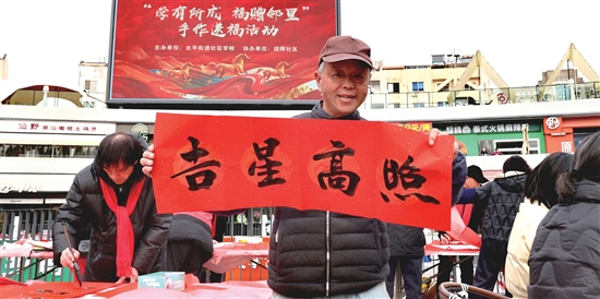 近日,市太平街道总工会联合社区学校、迎辉社区在CC广场开展“学有所成 福赠邻里”迎新春送福活动,为市民免费书写春联、剪马年窗花,赠送手作手工艺品,共同迎接马年春节的到来。