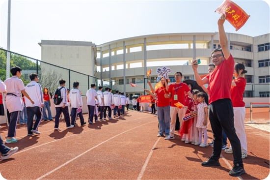 2025年高考,市二中老师给考生加油鼓劲。
