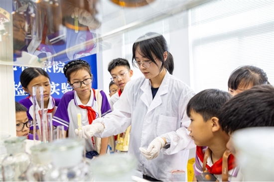 2025年7月17日,随迁子女正在市人民检察院观看水体检测实验。