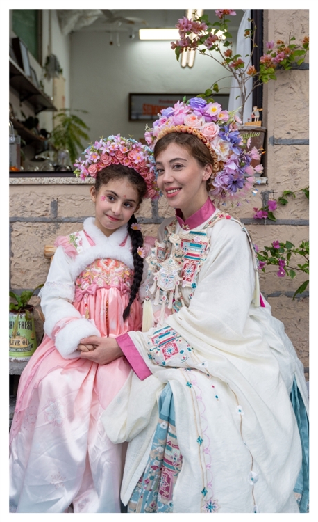 来自阿塞拜疆的Sunny带着女儿体验了簪花妆造。记者 王怡 摄