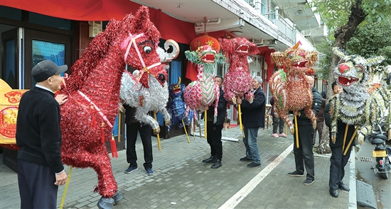 连日来,石桥头镇的居民们紧锣密鼓地赶制各式花灯,用于元宵节期间的巡游和展出。一盏盏精美的花灯,寄托着人们对新年的美好祈愿,传递着风调雨顺、国泰民安的朴素期盼。图为居民们在展示刚完工的花灯。