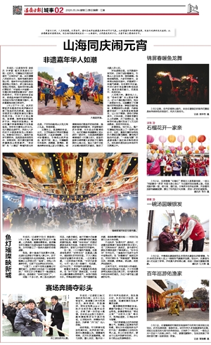 在一旁,一口大锅热气腾腾,志愿者将现煮的“好柿花生”汤圆盛入碗中,递到排队的市民手里。不少人围坐在临时设置的休息区里,一边吃着汤圆,一边欣赏鱼灯表演。“平时大家都忙,今天一家人在一起看灯、吃汤圆,这才叫过节。”市民陈先生笑着说。