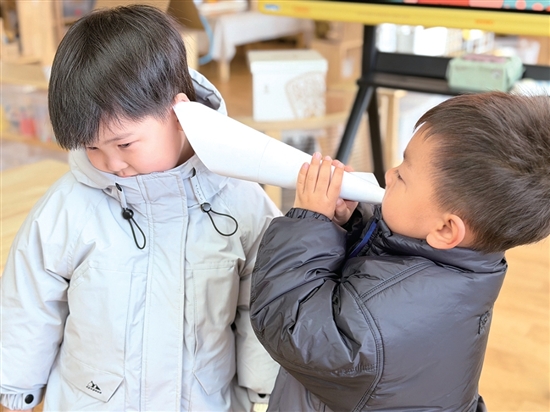 3月3日是第27个全国爱耳日。3月4日,高铁新城幼儿园将护耳教育融入“开学第一课”,通过趣味互动守护幼儿听力健康。孩子们在“纸筒传声”游戏中探索声音传播的奥秘,在角色扮演中化身“小医生”,了解倾听的重要意义。生动的沉浸式体验,让孩子们在适应新学期的同时,轻松掌握护耳知识,自觉养成健康用耳的良好习惯。
