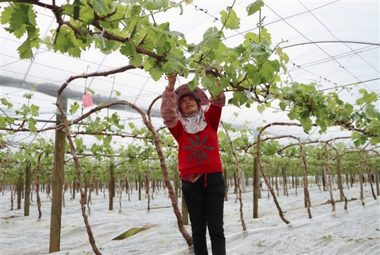 本报讯(记者贾宁欣/文 通讯员江文辉/图)惊蛰过后,万物复苏。对于箬横镇的阳光玫瑰种植户而言,此时正是大棚葡萄春季管理的关键时期。