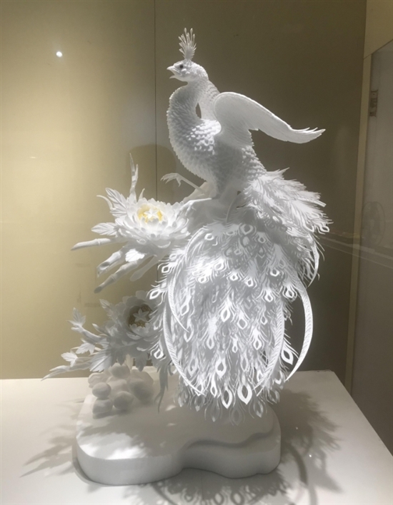 徐冬辉泡沫雕刻作品《孔雀迎春》。