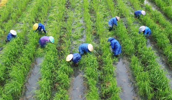 连日来,我市农户抢抓农时,全力做好早稻秧苗培育、田间作物管护等工作,为新一年的丰产丰收奠定基础。图为农户们在新河镇茭白生产基地忙于疏苗作业。