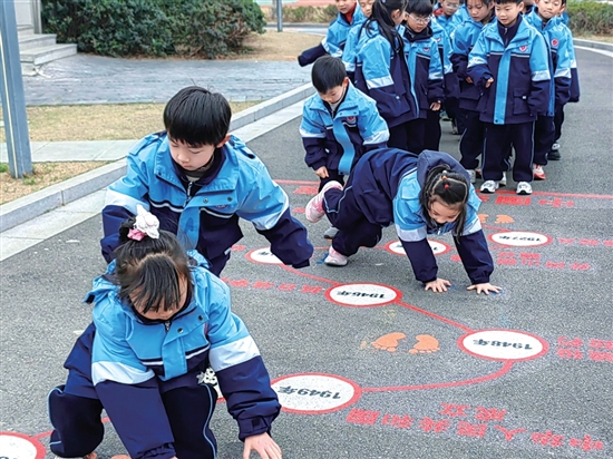 近日,红军小学将心理健康教育融入运动,开展校园步道趣味活动。操场上的9条跳格子路线,将“重走长征路”“二十四节气歌”等元素融入关卡。学生们分年级闯关,在跳跃中释放活力,在挑战中磨砺意志,遇到难题时彼此鼓励,闯关成功后满脸自豪,校园里洋溢着蓬勃的朝气。