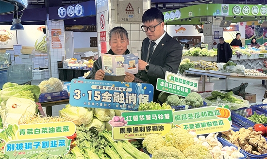 工作人员穿梭于各个摊位间,结合商户经营场景,用鲜活案例、通俗语言,向摊主们普及反诈防骗、假币识别及征信保护等实用的知识,以这场“沉浸式”宣传,守护摊主们的“钱袋子”,为市场筑起金融安全防线。