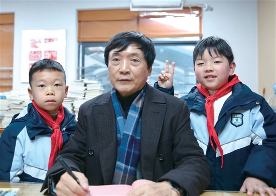 讲座结束后,曹爷爷在我珍藏的《草房子》上签了名,我还和他合了一张影。那一刻,我激动得心怦(pēnɡ)怦直跳!我暗暗下定决心,一定要牢记曹爷爷叮嘱的“悠悠万事,读书为大”,做一个热爱读书的人,在阅读中享受读书的快乐。
