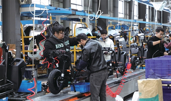 近日,在台州市壹酷新能源科技有限公司生产车间内,工人们忙碌地赶工,一辆辆组装完成的电动车经过检测后被送往仓库,将发往市场。