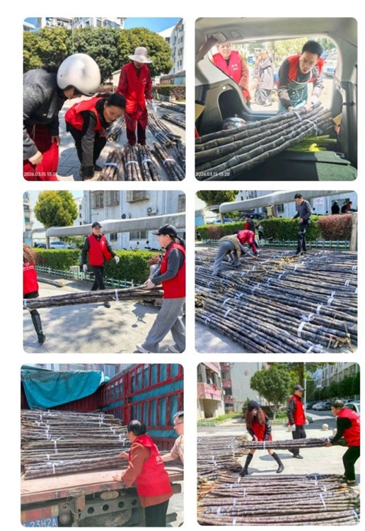 今天下午,满载甘蔗的货车抵达社区,志愿者们二话不说,帮着搬运、清点、分发。一根根甘蔗从车上卸下,很快被居民们领走,现场忙碌而有序,每个人脸上都带着笑意——这份甜,是大家一起攒出来的。
