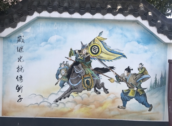 《戚继光抗倭斩子》壁画。
