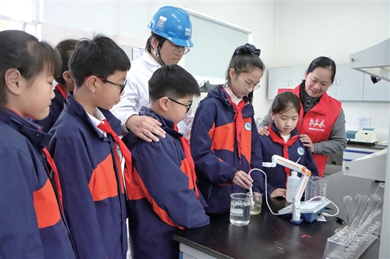 可视化实验环节更是让学生们兴奋不已。大家对比处理前后的水样,并开展pH值等测试。“看到生成的数据报告,我对科学课产生了浓厚的兴趣。”学生潘亭廷说。