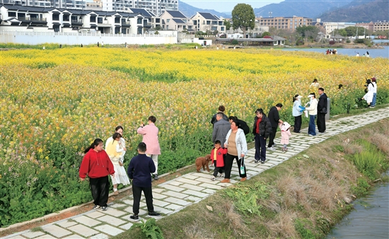 眼下,坞根镇大塘湿地的七彩油菜花迎来盛放期。连日来,许多游客在这里观赏、打卡,有力地推动了当地农旅产业的蓬勃发展,为乡村振兴注入新动力。记者 周学军 摄