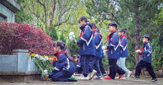 近日,温中实验学校的师生来到温岭烈士陵园,敬献自己亲手扎制的小白花、草本怀念书签,缅怀先烈,传承红色记忆。