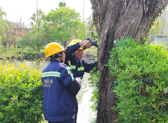 同时,结合“疏绿透美”城市绿化提升行动,园林工人对老弱病残柳树实施科学修剪,剪除枯死枝、病虫枝,优化树冠结构。“柳树平均寿命约30年,部分已进入老化阶段,易受病虫害侵袭。”林琴棋说,“这些蛀干害虫会直接钻入树体内部,所以我们采用根部灌药的方式进行防治。”